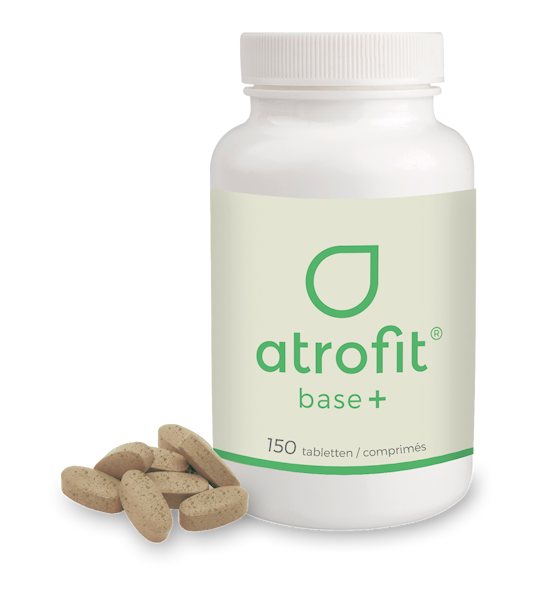 Potje met 150 Atrofit Base+ tabletten ter ondersteuning van spieren, pezen en gewrichten.